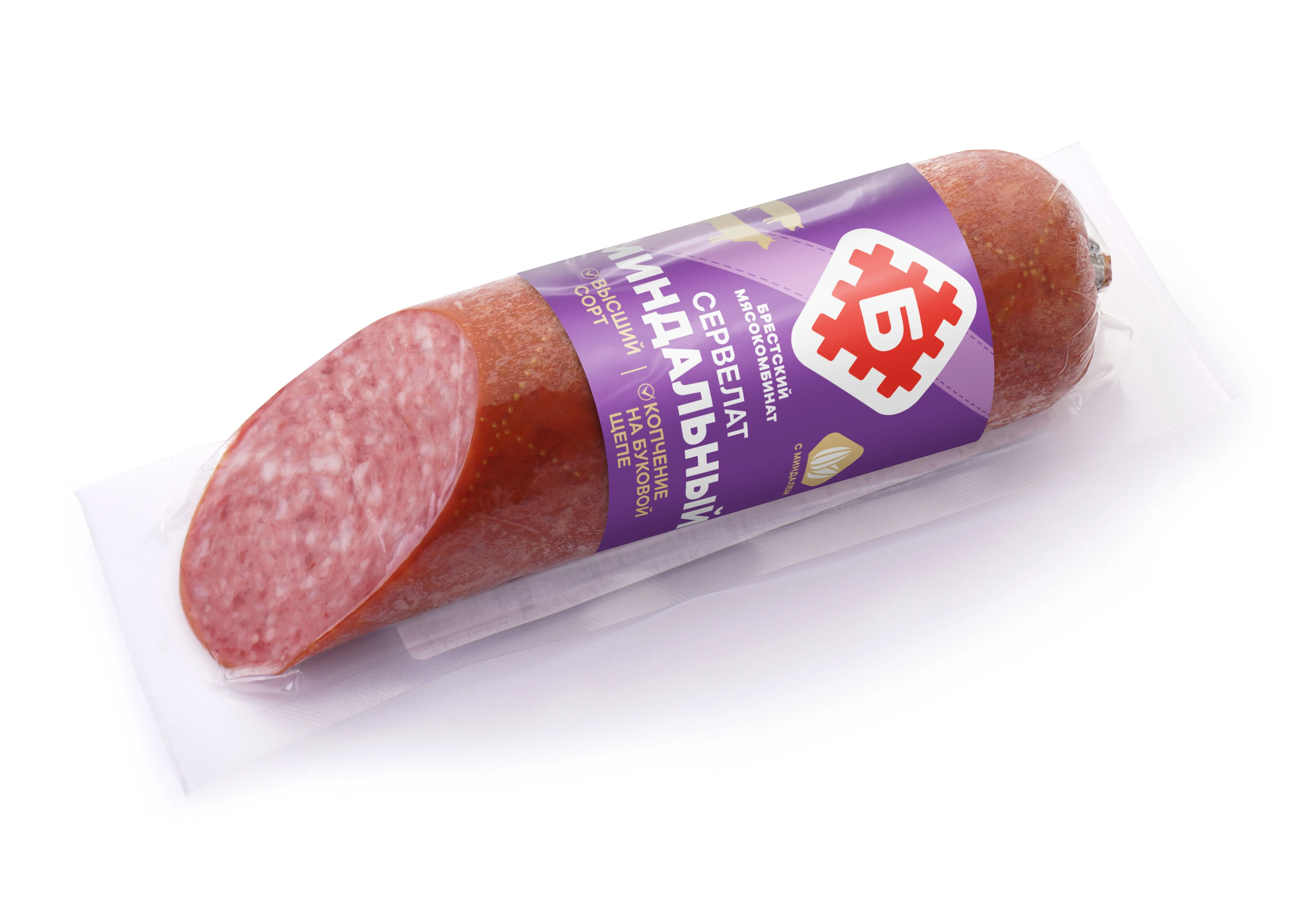 Купить Сервелат "Миндальный" 220 г можно с доставкой по Ханты-Мансийске. Мы гарантируем отличное качество и свежесть наших белорусских колбас!